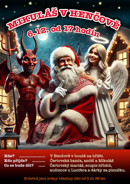 - po 18. hod přijde Mikuláš s andělem a budou vyvolávat hříšníky a rozdávat dárky